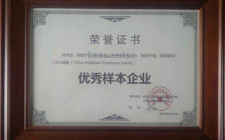 優(yōu)秀樣本企業(yè)榮譽(yù)證書(shū)